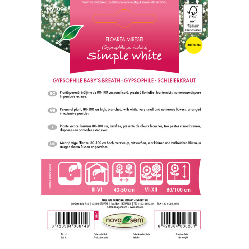 Seminte de flori floarea miresei simpla alba 0,3 gr de la Novasem.