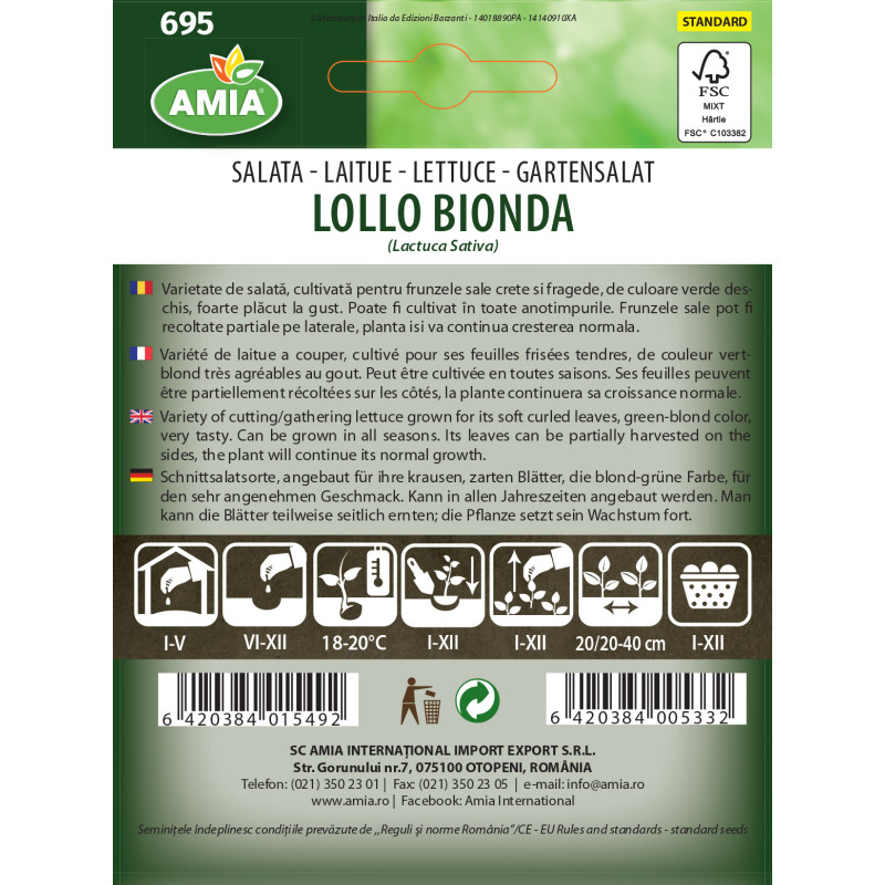 Rezistenta la afide si mucegai. Se cultiva in orice anotimp.